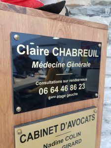 Les différentes indications à graver sur votre plaque professionnelle orthophoniste doivent être claires et précises, il faut que la plaque soit facile à lire pour l’usager, le contenu est la clé de la réussite pour une bonne communication. Pour obtenir une plaque orthophoniste personnalisée vous pouvez graver différentes mentions comme : nom, prénom, qualité et spécialité, diplôme, titre et fonction, jours et heures d’ouverture, téléphone…