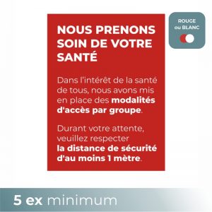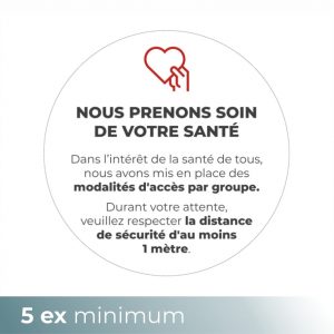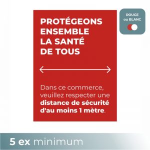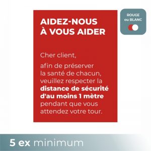 Ils font partie des différents dispositifs protection utiles et sont une bonne signalétique de distanciation sociale. Aussi, ils sont généralement de couleur rouge ou blanche et assez voyants. Ils rappellent à tous l’obligation de rester à un minimum de 1 mètre de distance pour éviter la contamination. De plus, ils disposent toujours d’un slogan directement lié aux mesures gouvernementales pour lutter contre la propagation du coronavirus. Ce type d’adhésif covid19 entreprise est idéal en association à des marquage de sol pour la distanciation sociale.